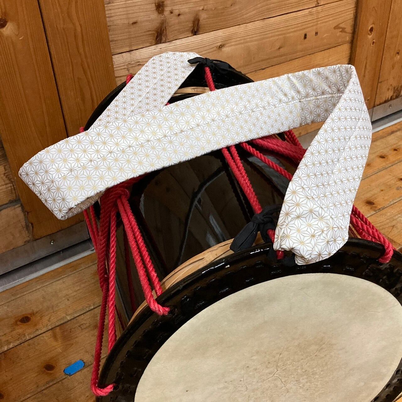担ぎ桶用のストラップ。伝統的な和柄の「麻の葉」模様です。
